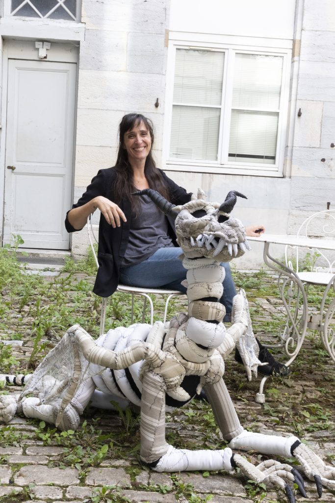 For 20 years, Dupond has worked with recovered fabrics. Armed with a needle and thread, she crafts a sensitive world full of ferocious beasts, fantastical animals, and human forms.